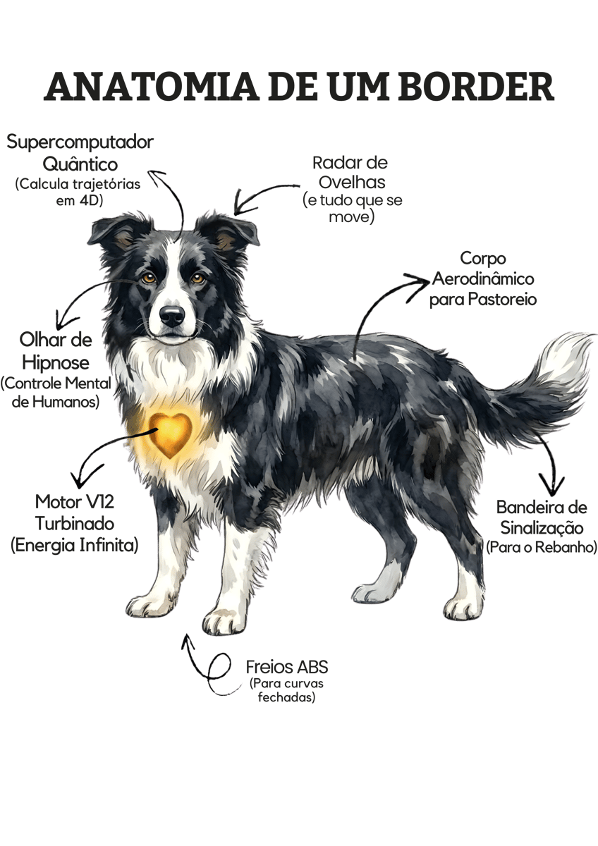Esta peça da Coleção Anatomias é uma homenagem a esse conhecimento exclusivo. Com um design inteligente e bem-humorado, criamos um "raio-X" da personalidade que torna essa raça incomparável.